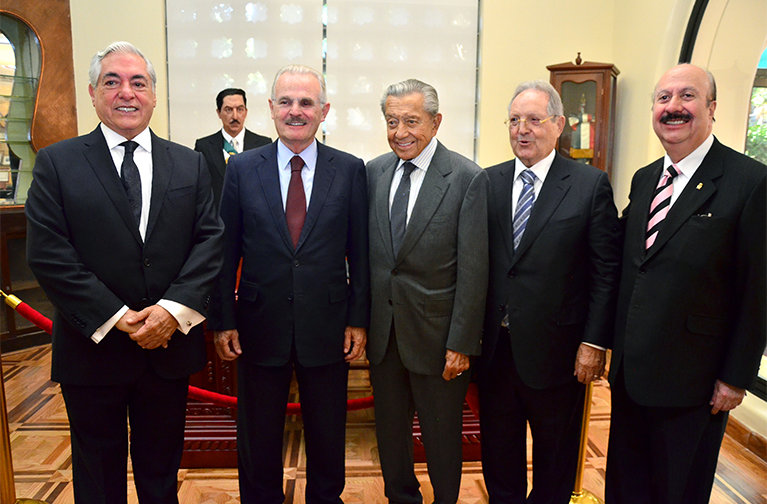 Dr. Alejandro Carrillo Castro, Lic. Francisco Labastida Ochoa, Lic. Miguel Alemán Velasco, don Olegario Vázquez Raña y el Dr. José Elías Romero Apis.