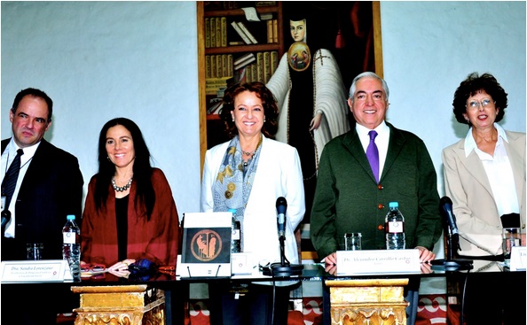 Dr. Paulino Sabugal, Dra. Sandra Lorenzano, Carmen Beatriz López Portillo, Rectora de la Universidad del Claustro de Sor Juana, Alejandro Carrillo Castro y Luz Elena Cabrera Quarón.
